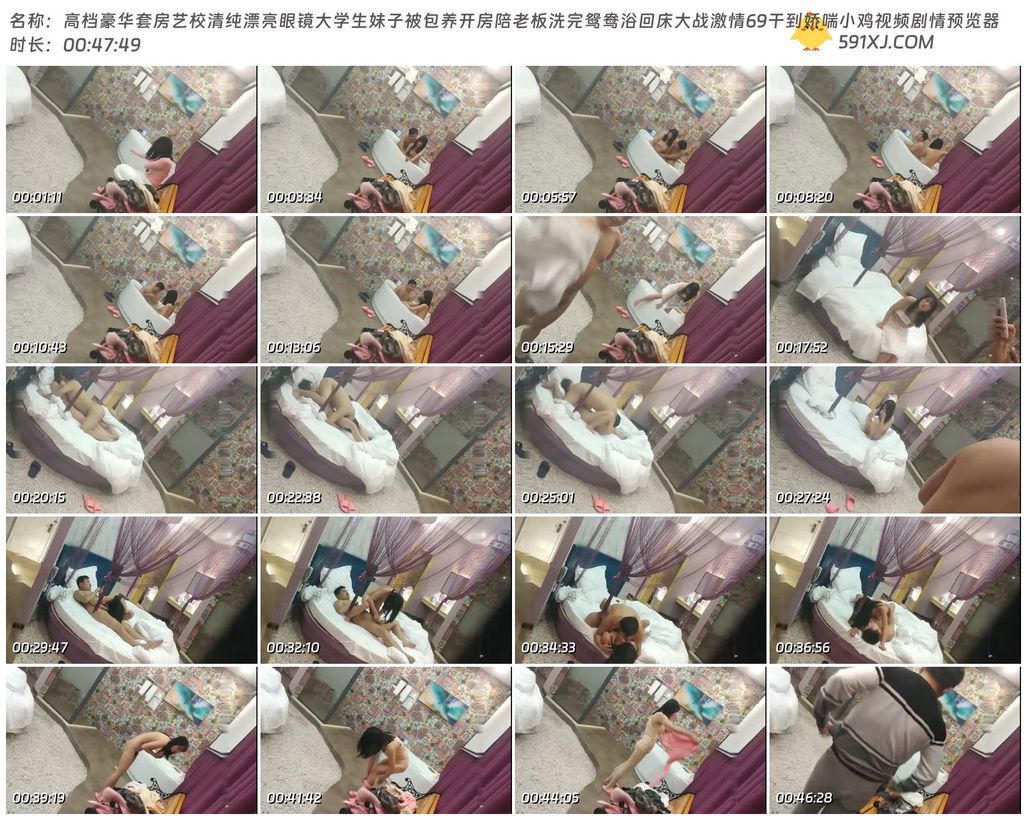 高档豪华套房艺校清纯漂亮眼镜大学生妹子被包养开房陪老板洗完鸳鸯浴回床大战激情69干到娇喘