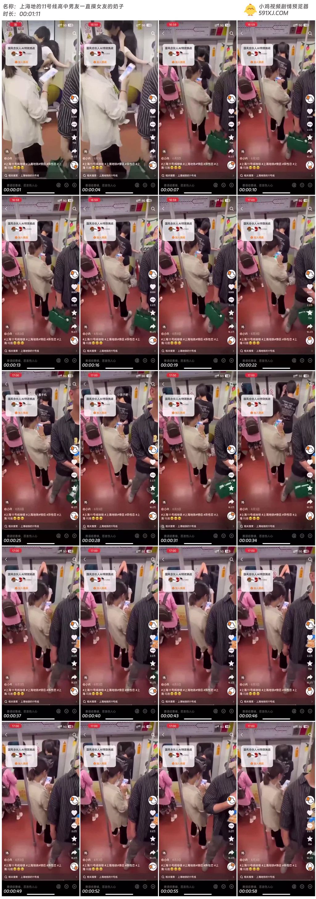 上海地的11号线高中男友一直摸女友的奶子