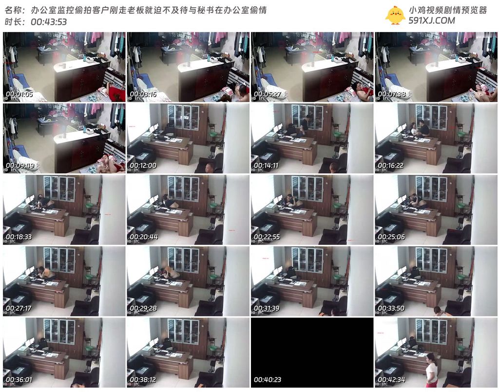 办公室监控偷拍客户刚走老板就迫不及待与秘书在办公室偷情