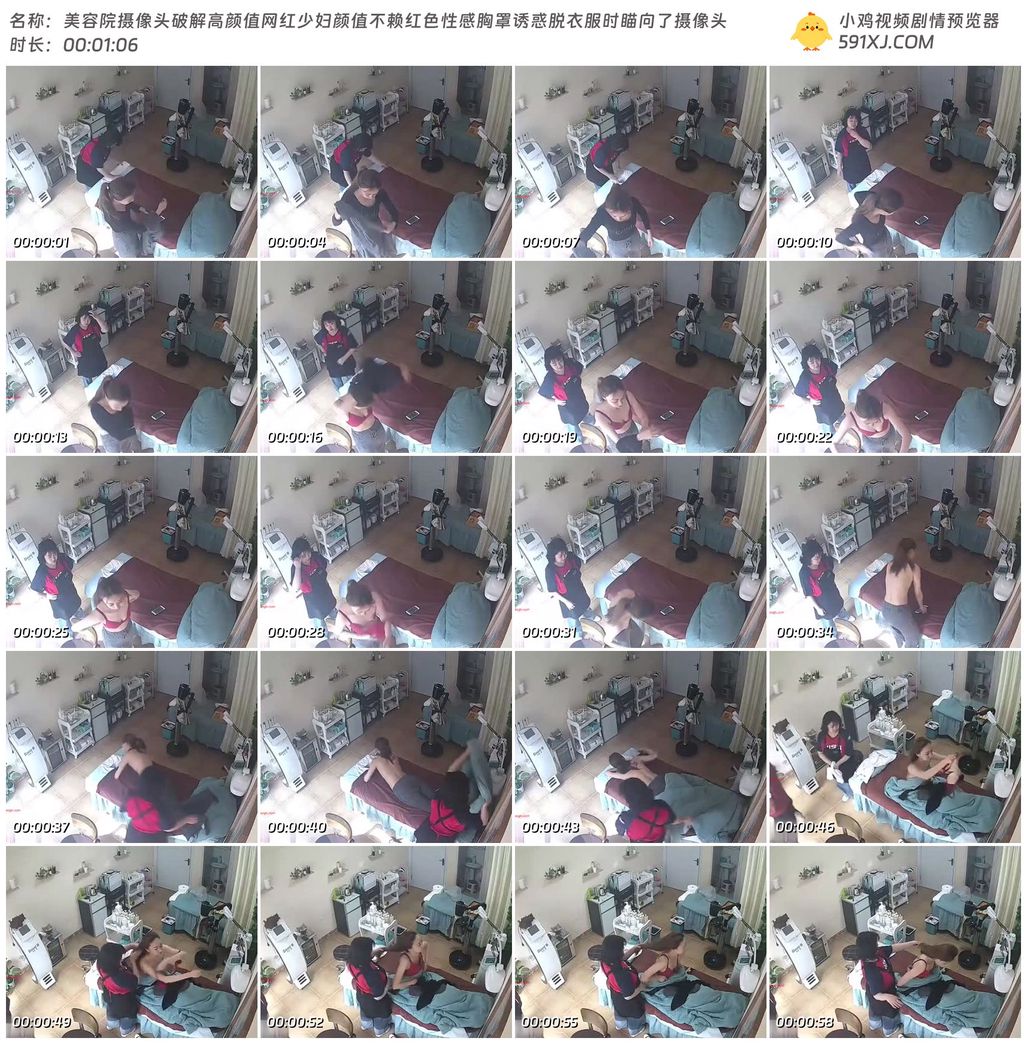 美容院摄像头破解高颜值网红少妇颜值不赖红色性感胸罩诱惑脱衣服时瞄向了摄像头