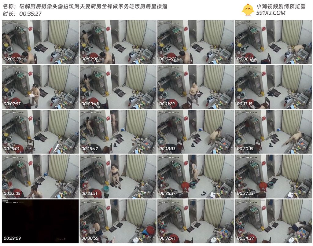 破解厨房摄像头偷拍饥渴夫妻厨房全裸做家务吃饭厨房里操逼
