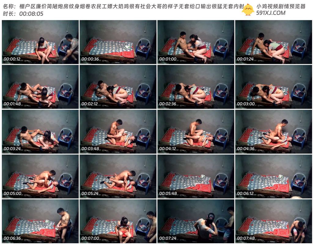 棚户区廉价简陋炮房纹身烟卷农民工嫖大奶鸡很有社会大哥的样子无套给口输出很猛无套内射