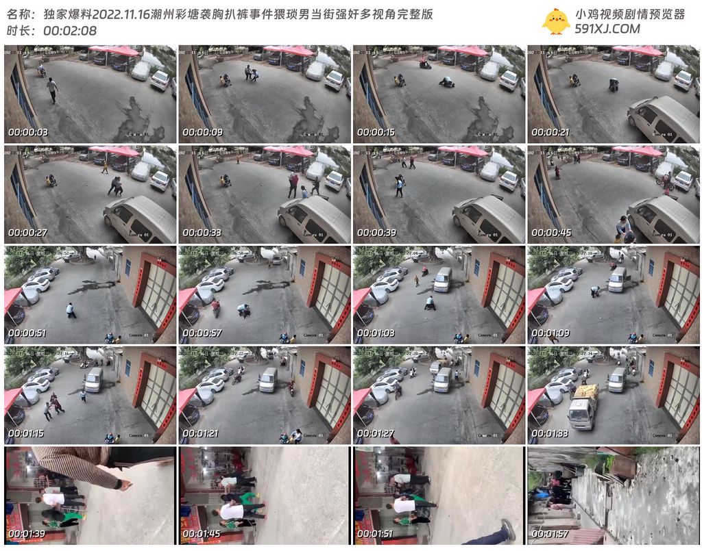 独家爆料2022.11.16潮州彩塘袭胸扒裤事件猥琐男当街强奸多视角完整版