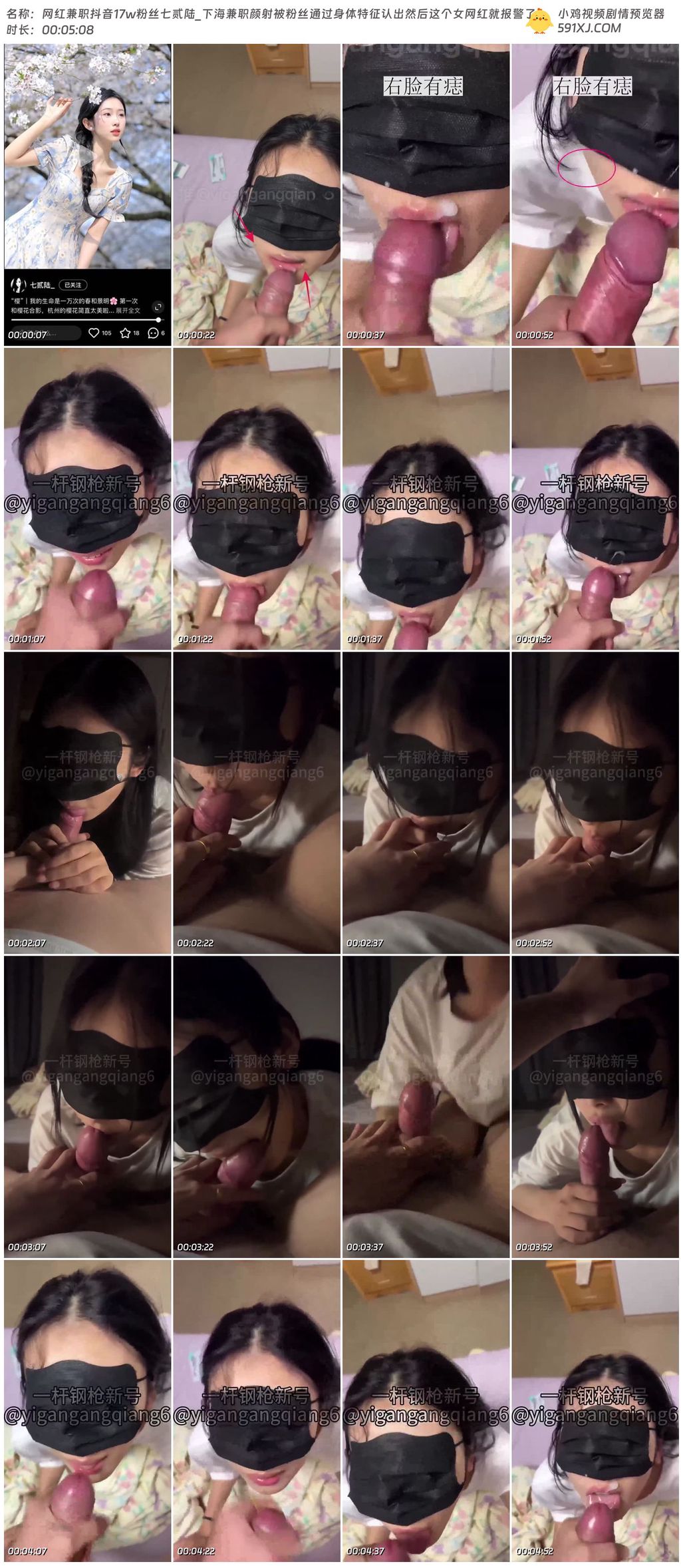 网红兼职抖音17w粉丝七贰陆_下海兼职颜射被粉丝通过身体特征认出然后这个女网红就报警了