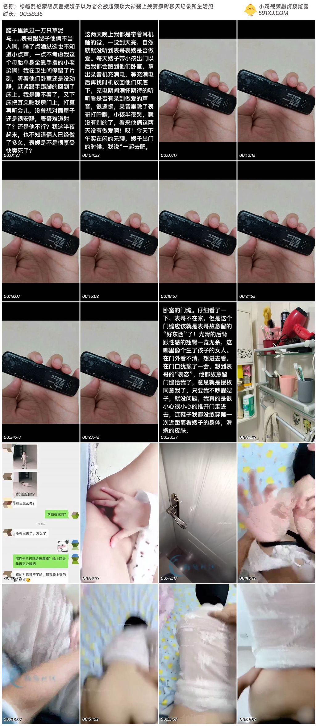 绿帽乱伦蒙眼反差婊嫂子以为老公被超猥琐大神强上换妻癖附聊天记录和生活照