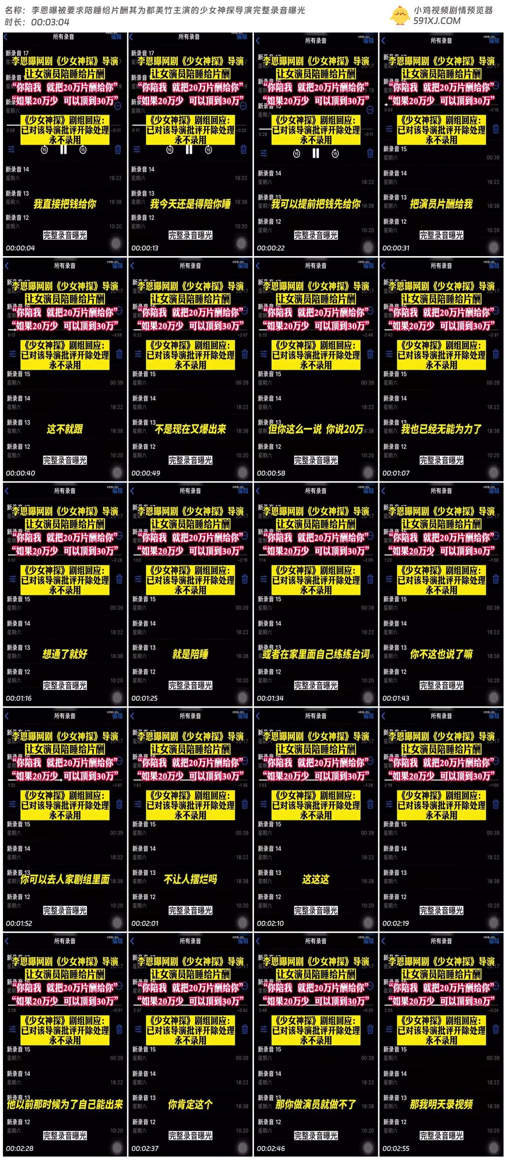 李恩曝被要求陪睡给片酬其为都美竹主演的少女神探导演完整录音曝光